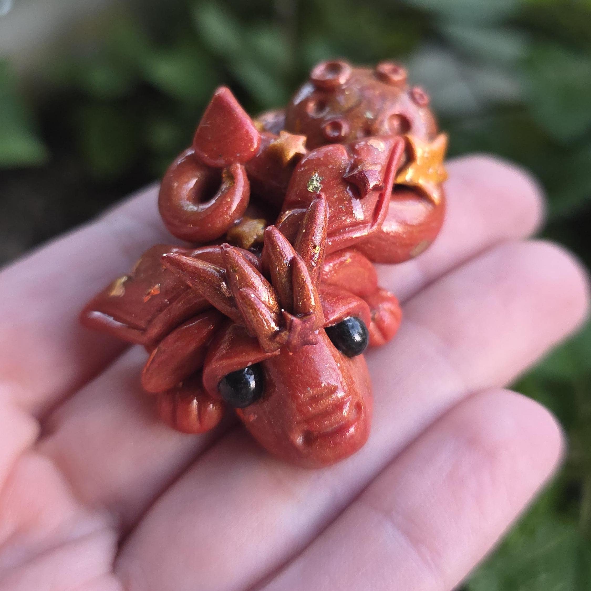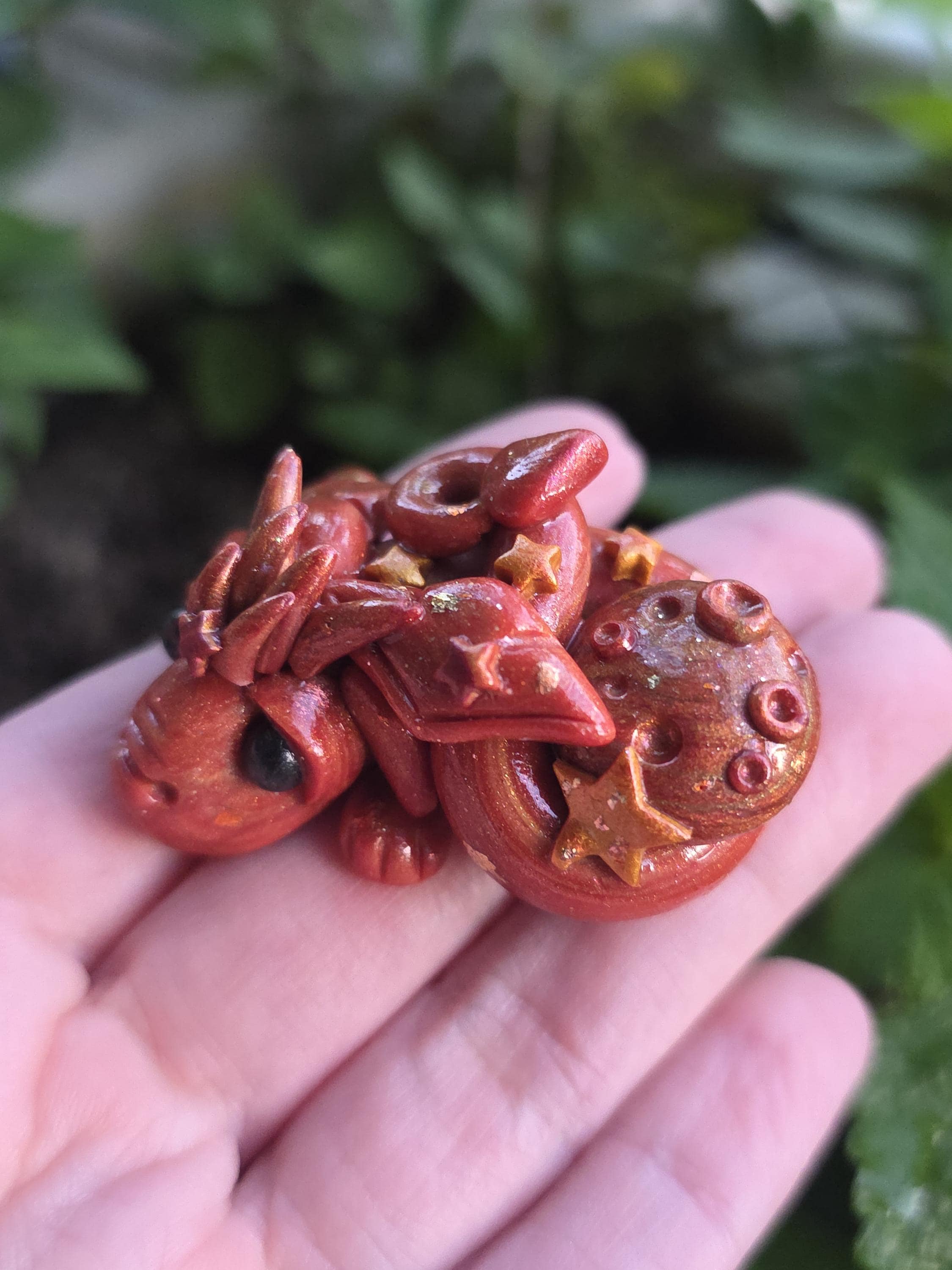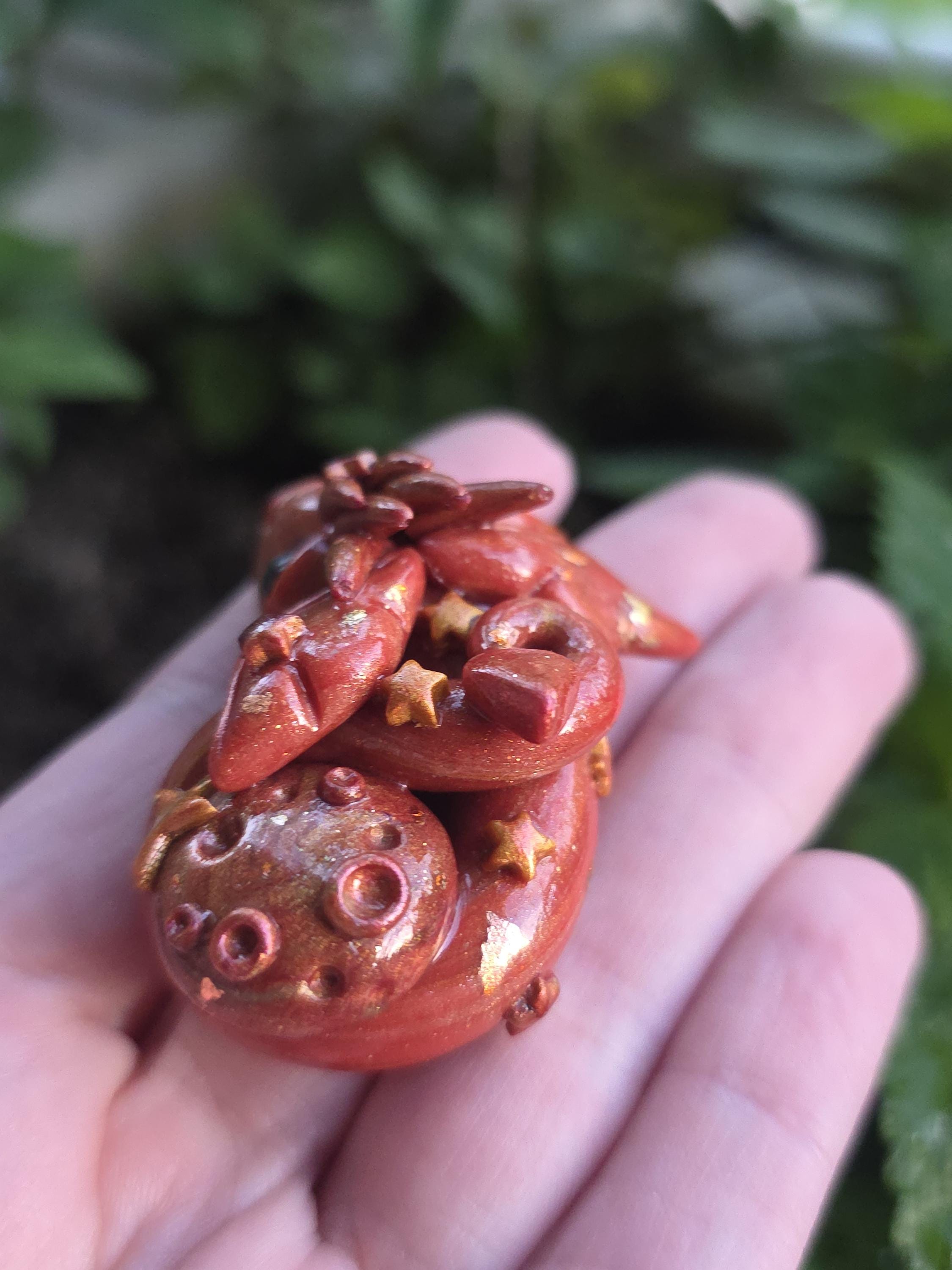 Made using polymer clay, mica powders and glitter. Finished with a shiny sealant.